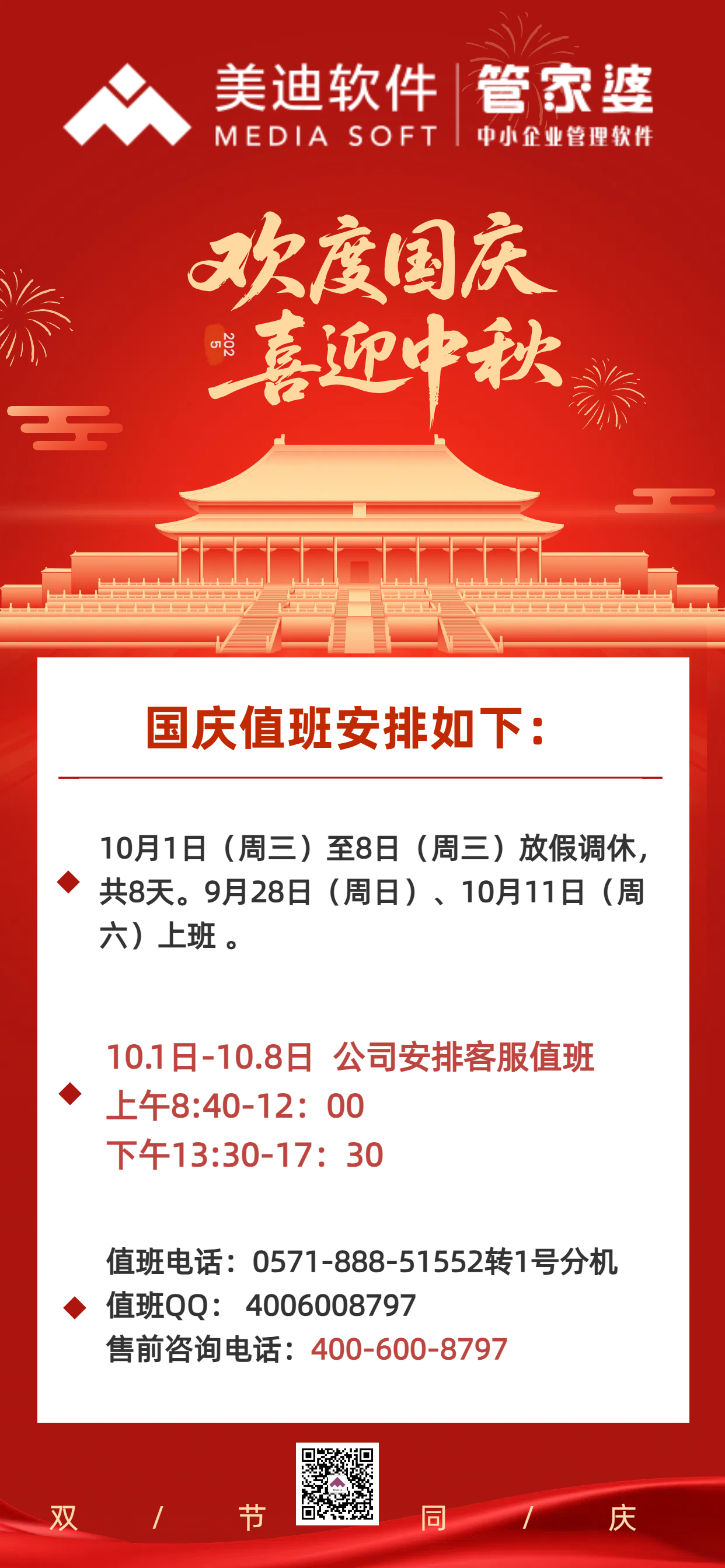 扫描二维码 关注美迪 美迪软件-管家婆软件服务中心 ☏400-600-8797 0571-88851552 服务区域: 杭州|湖州|嘉兴|绍兴|宁波|慈溪|台州 |丽水|南京|徐州|苏州 |常州 28年管家婆服务商|管家婆物联通开发商|管家婆开票通开发商|管家婆订货易开发商